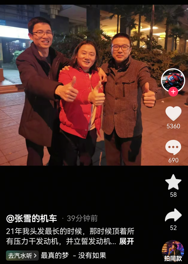 4月3日,张雪晒出长发照并配文:2021年我头发最长的时候,那时候顶着所有压力干发动机,并立誓发动机不点火成功,不剪发。